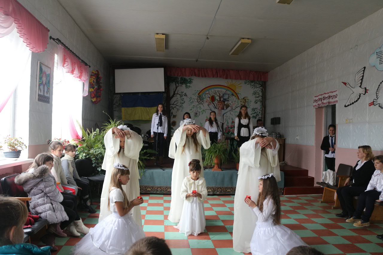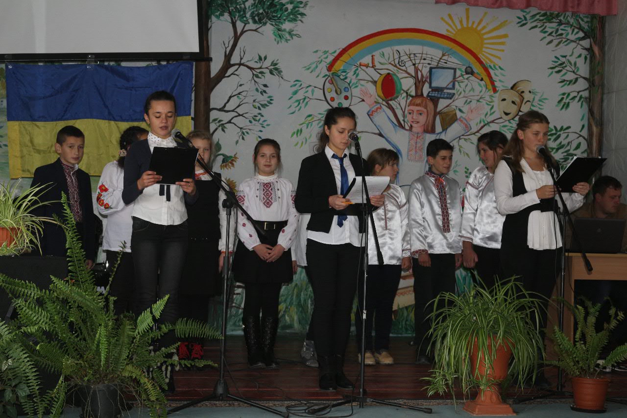 Лірична музика, патріотичні пісні, зворушливі вірші, змістовно підібраний матеріал не залишили байдужими нікого. Учасники танцювального гуртка з танцювальною композицією «Україні» (керівник Гаврилів С.М.) відкрили нашу святкову програму. Ліричні вірші учасників драматичного гуртка (керівник Солтис О.Я.) прозвучали у виконанні Луцького Арсена, Лаврів Марії та Фляйзнер Тетяни. У виконанні учасників вокального гуртка «Джерельце» (керівник Ільків Т.Р.) прозвучали патріотичні пісні. Згадали і у своїх виступах Небесну Сотню ведучі свята Федюшко Софія, Федоришин Валентина і Крук Анна. Приємно вразив виступ наймолодших учасників вокального ансамблю «Козачата» (керівник Ільків Т.Р.). З піснею «Маки червоні» виступили Гризак Ольга та Маковійчук Тетяна (керівник Солтис О.Я.). Хвилиною мовчання присутні вшанували пам’ять всіх наших героїв, яких немає вже серед живих. Кульмінацією свята був виступ вокалістів вокально-інструментального гуртка (керівник Фікерт М.К.) та учасників танцювального колективу з композицією «Нашим Героям».Святкову програму організувала культорганізатор Солтис О.Я. та керівники гуртків. Музичний супровід свята підготував керівник гуртків Фікерт М.К.